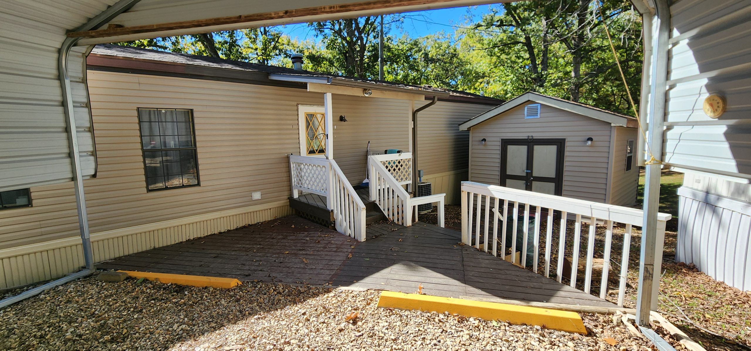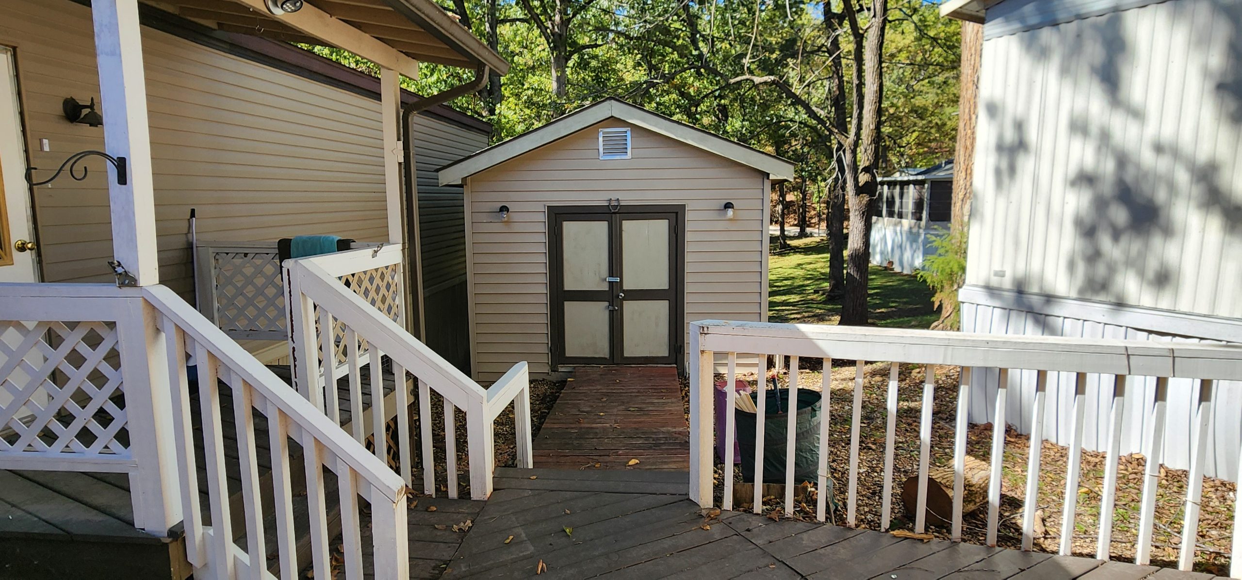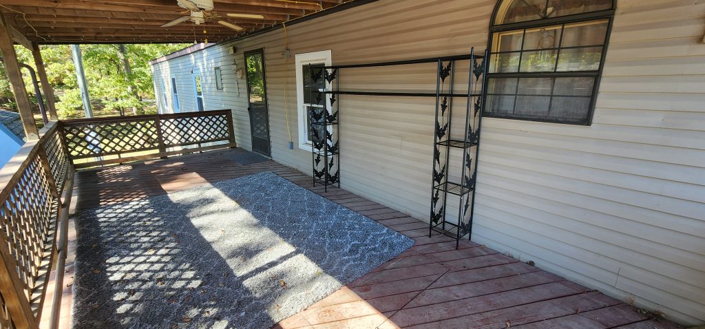 - Refrigerator, range, washer and dryer, large covered deck, central air and heat, large storage building